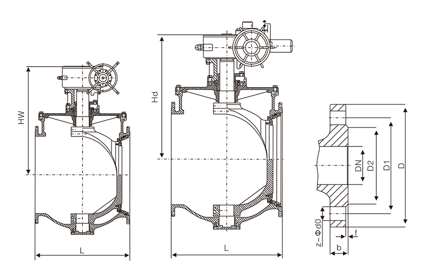 L | D | D1 | D2 | b | f | Z-Φd0 | Hw | Hd | |